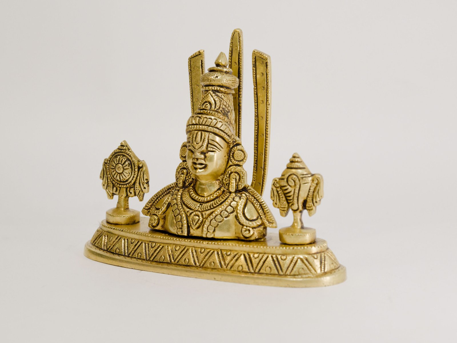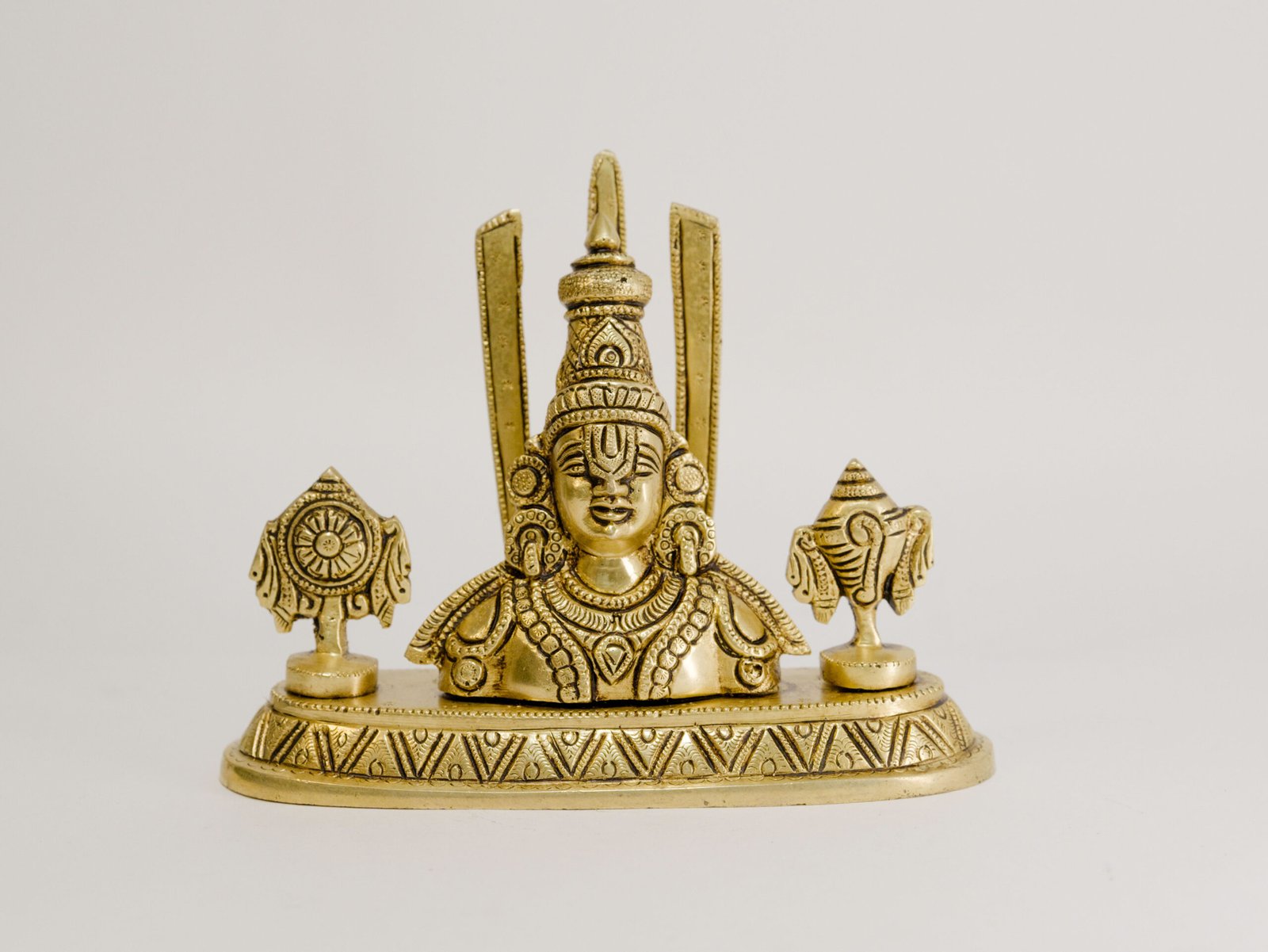 Adorn your home with the divine presence of this magnificent Balaji 5.8 Inch Idol. Handcrafted from super fine pure brass and finished with a radiant golden mirror shine, this exquisite deity embodies prosperity and protection. Balaji, a form of Lord Vishnu, is revered for granting blessings and removing obstacles. This substantial, quality piece makes a stunning focal point for puja or decor, reflecting genuine, lasting devotion.