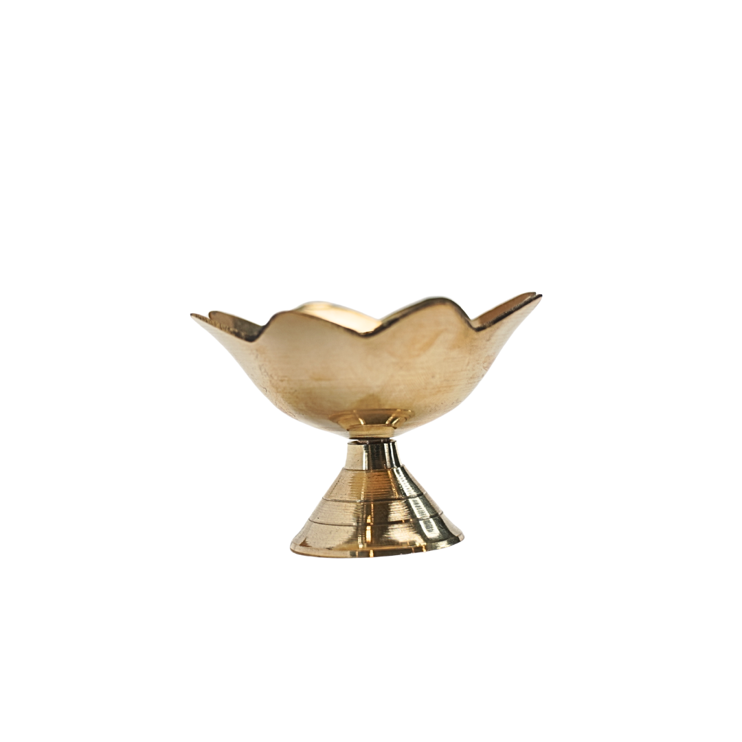 Precision-cast in high-quality brass, this diya is designed for long-lasting use in home temple décor and daily rituals. Measuring 1.8 inches in height and 2.7 inches in width, it is ideally sized for small altars or as a series of lights during festive occasions. Weighing 0.055 kg, its solid construction ensures stability when filled with oil or ghee. This handcrafted brass idol accessory makes an exceptional choice for spiritual home décor or as a meaningful housewarming gift. Whether placed at an entrance to welcome prosperity or used during evening aarti, this Kamal Diya brings a refined touch of Indian heritage and auspicious energy to any sacred interior.