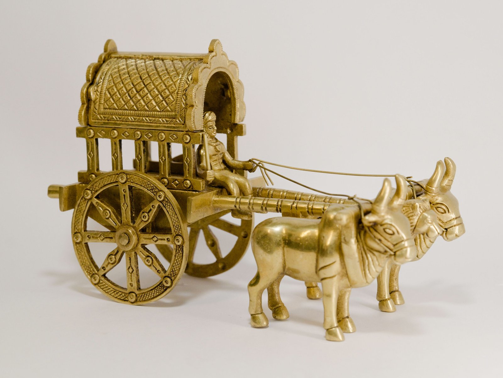 Elevate your space with this magnificent Bullock Cart Decor showpiece. Expertly crafted from super fine, pure brass with a radiant golden mirror finish, this vintage-inspired artifact captures the elegance of traditional India. A perfect luxury home accent, its intricate design and timeless aesthetic make it a truly eye-catching and exclusive piece for any refined interior.