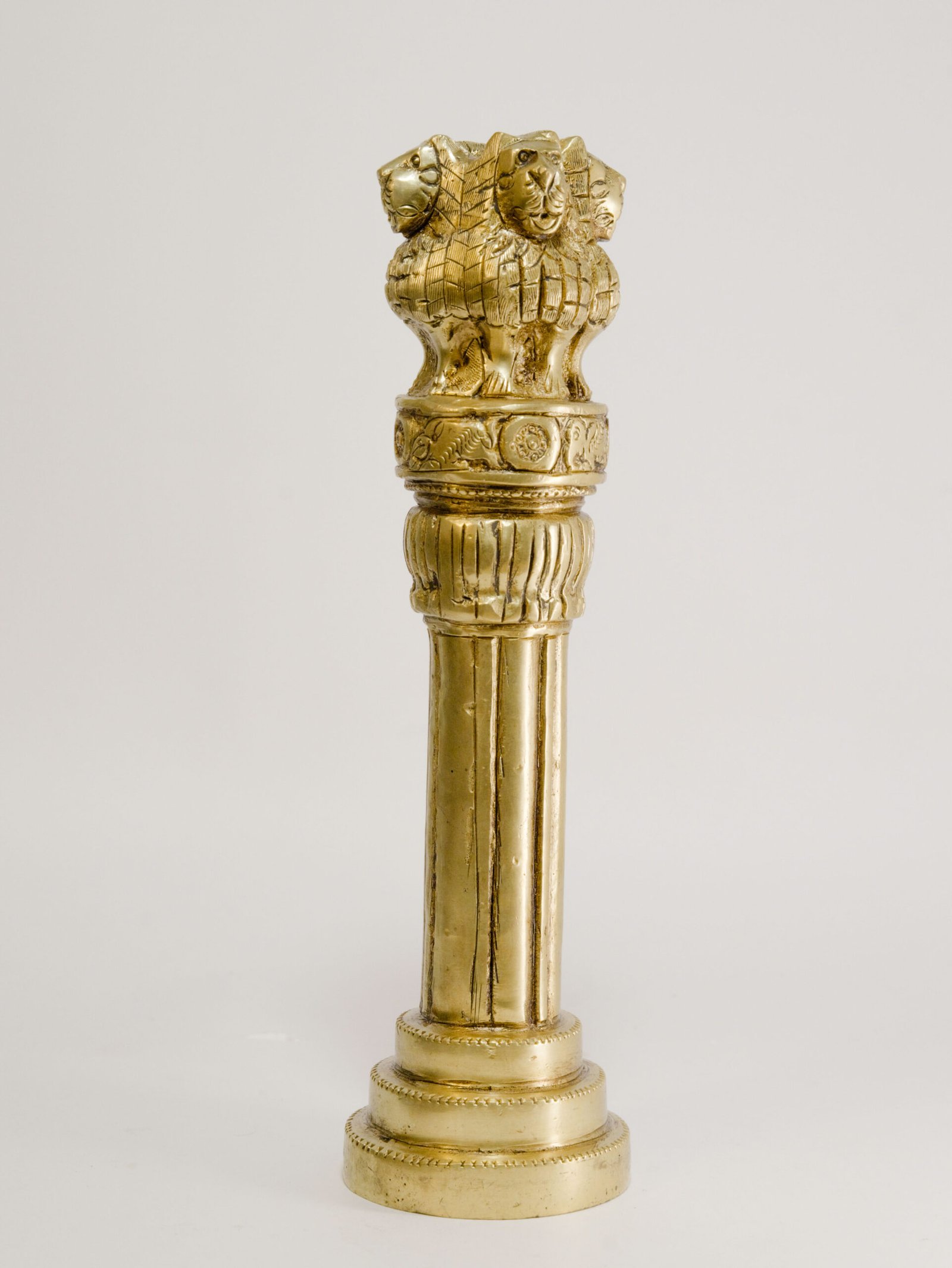 Embrace regal power with this exquisite 10-inch Indian Lion Idol, meticulously crafted from genuine, fine pure brass with a radiant Golden Mirror Finish. Inspired by India’s National Emblem, this stunning sculpture brings the majestic aura of the Ashoka Chakra to your decor. Its timeless artistry and authentic quality make it a truly meaningful and luxurious acquisition for any sophisticated interior or spiritual space.