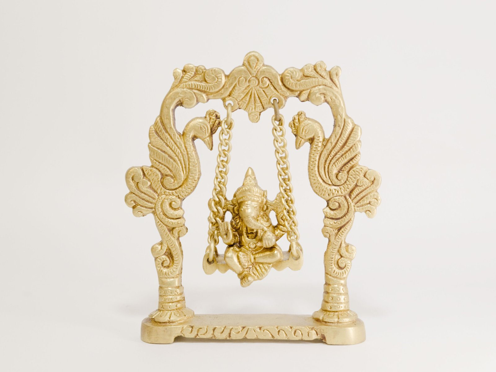 Embrace divine joy with this exquisite Jhula Ganesha Idol. Meticulously crafted from fine, pure brass and finished with a brilliant golden mirror shine, this spiritual figurine symbolizes prosperity and the removal of obstacles. Lord Ganesha gracefully seated on a swing brings positive energy and artistic elegance, making it a genuine, timeless showpiece for your home or pooja room.